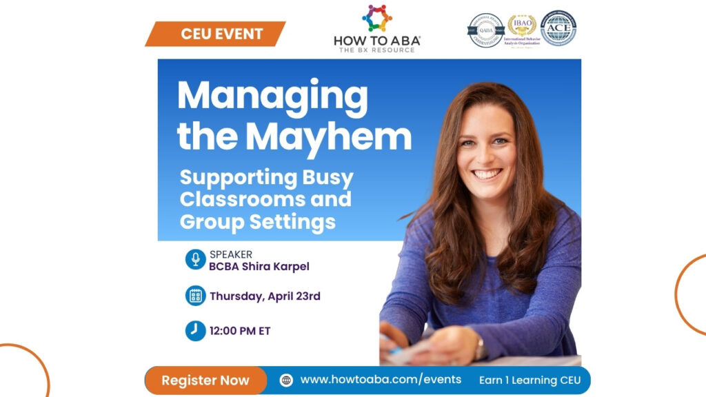 Join Shira Karpel for our live CEU, Managing the Mayhem: Supporting Busy Classrooms and Group Settings, and instantly unlock your Bx Resource Pro Membership!